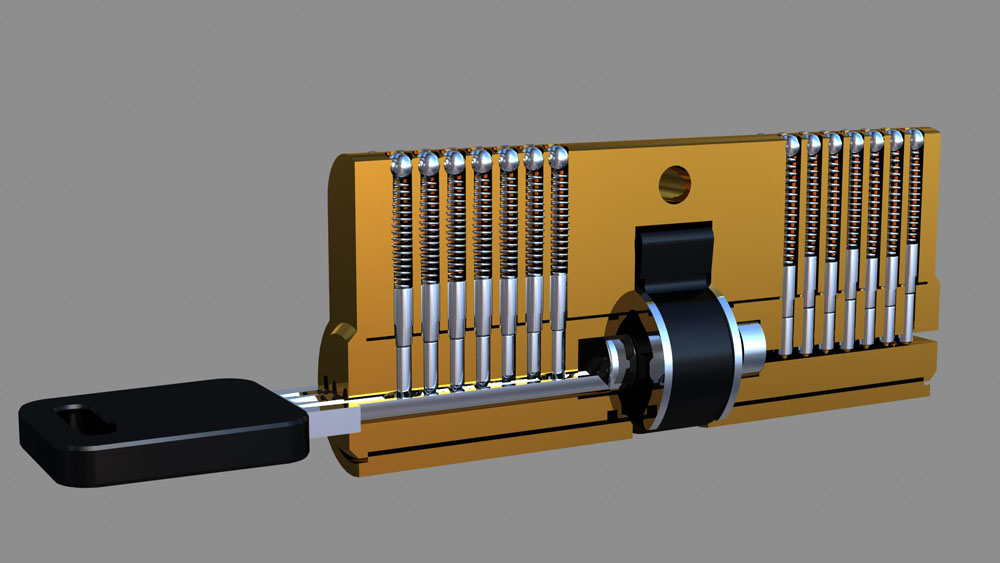 锁在制造的时候,锁芯珠孔的排列不是全在一条直线上,有些孔向右少许,有些孔向左少许,而这些孔左右偏移就是开锁的关键所在。